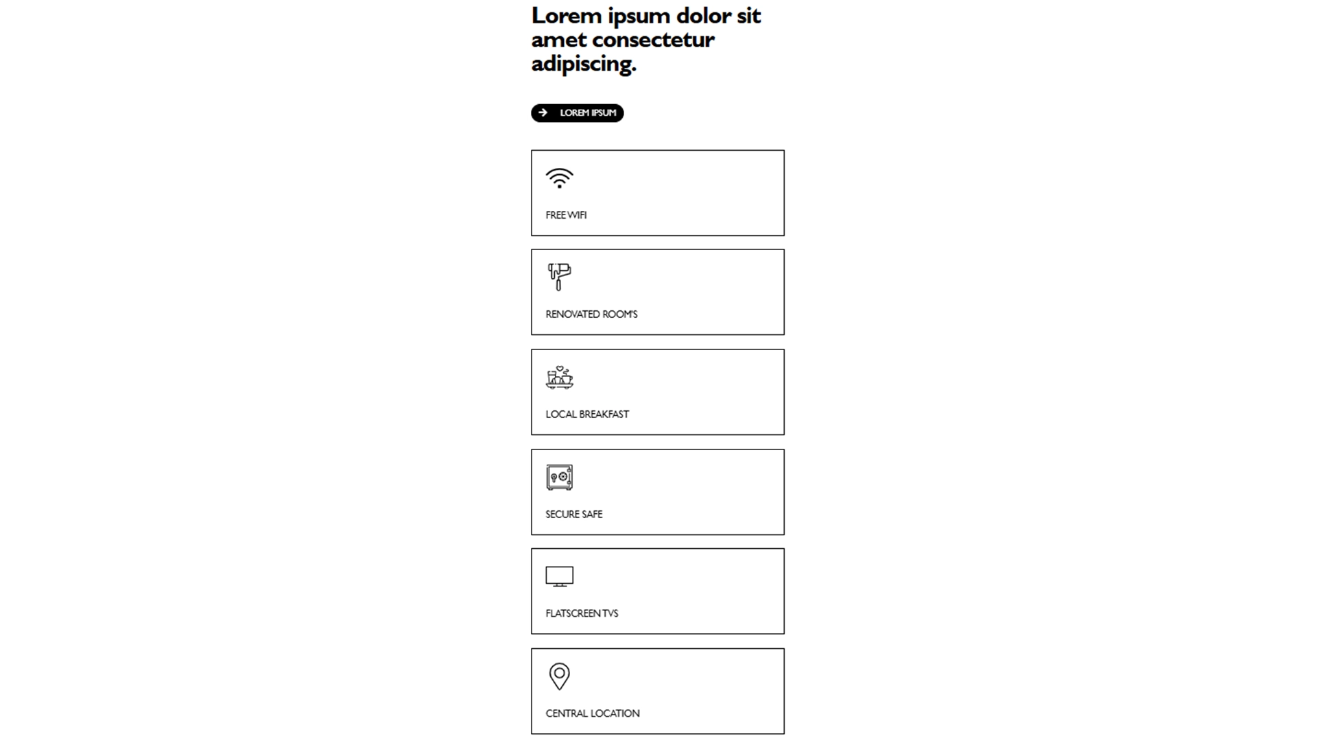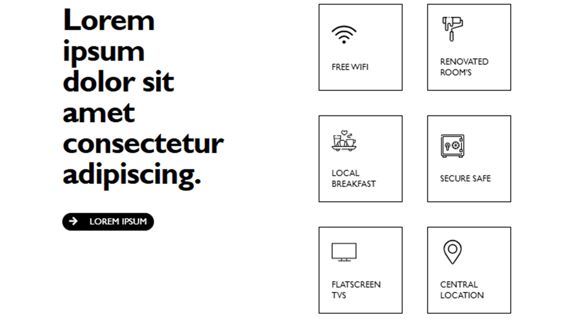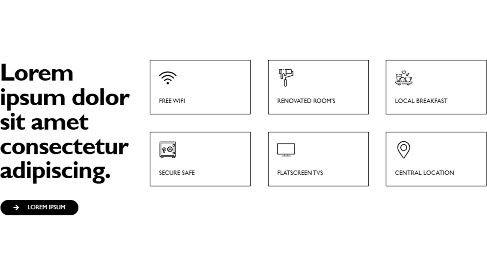 Dieser Vorteile-Abschnitt ist übersichtlich und modern gestaltet, um die wichtigsten Pluspunkte deines Angebots auf einen Blick darzustellen. Auf der linken Seite befindet sich ein einprägsamer Titel, der den Abschnitt einleitet, gefolgt von einem Button, der zu weiterführenden Informationen führt. Rechts sind verschiedene Icons angeordnet, jedes begleitet von einem kurzen, prägnanten Text, der das jeweilige Vorteil beschreibt. Diese klare Aufteilung sorgt dafür, dass Besucher die Vorteile schnell erfassen und animiert sie zur weiteren Interaktion durch den Call-to-Action-Button.